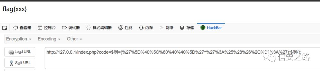 原理大同小异,$啊=getFlag;$啊();,这里就不需要用 {} 了,因为取反的值直接被当作字符串赋值给了 $ 啊。